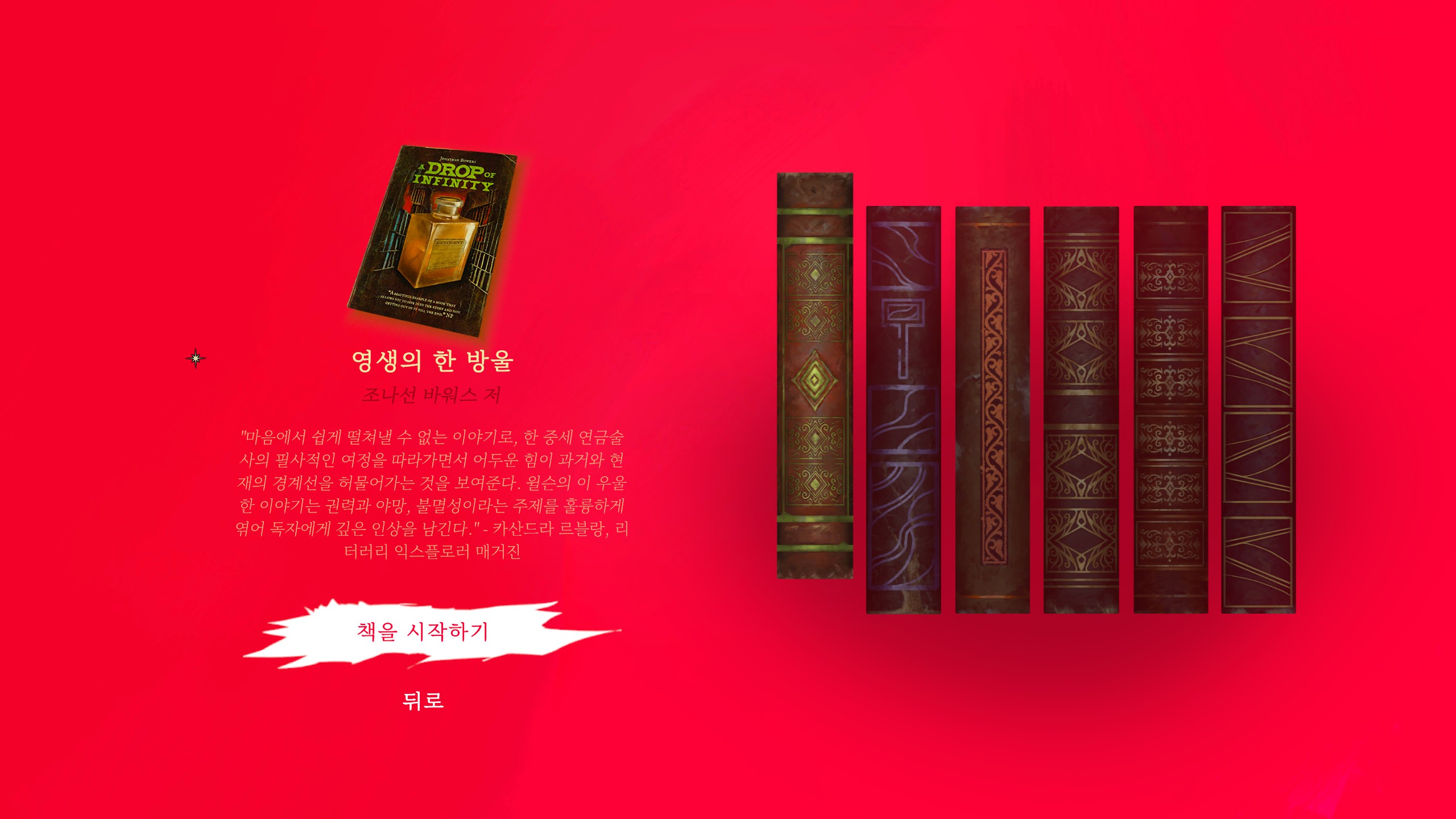 그래서 이 게임 속 시점에서 주인공이 임무를 위해 들어가는 책들 내용이... 우리가 익히 아는 작품들을 조각조각 섞어서 만든 잡탕임ㅋㅋㅋㅋㅋㅋ